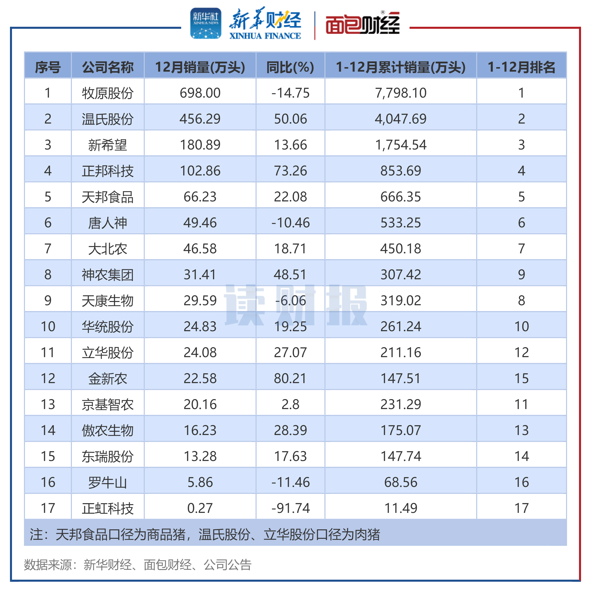 交易所,交易所排名,交易所排行,加密货币交易所排行榜,加密货币是什么,加密货币交易平台,币安交易所,火币交易所,欧意交易所,Bybit交易所,Coinbase交易所,Bitget交易所,交易所排行近期,生猪养殖企业12月的销售数据陆续披露。新华财经和面包财经研究员在剔除部分数据披露不全的上市猪企后,以沪、深两大交易所主要上市生猪养殖企业为样本,分别统计其生猪销售收入、销量。